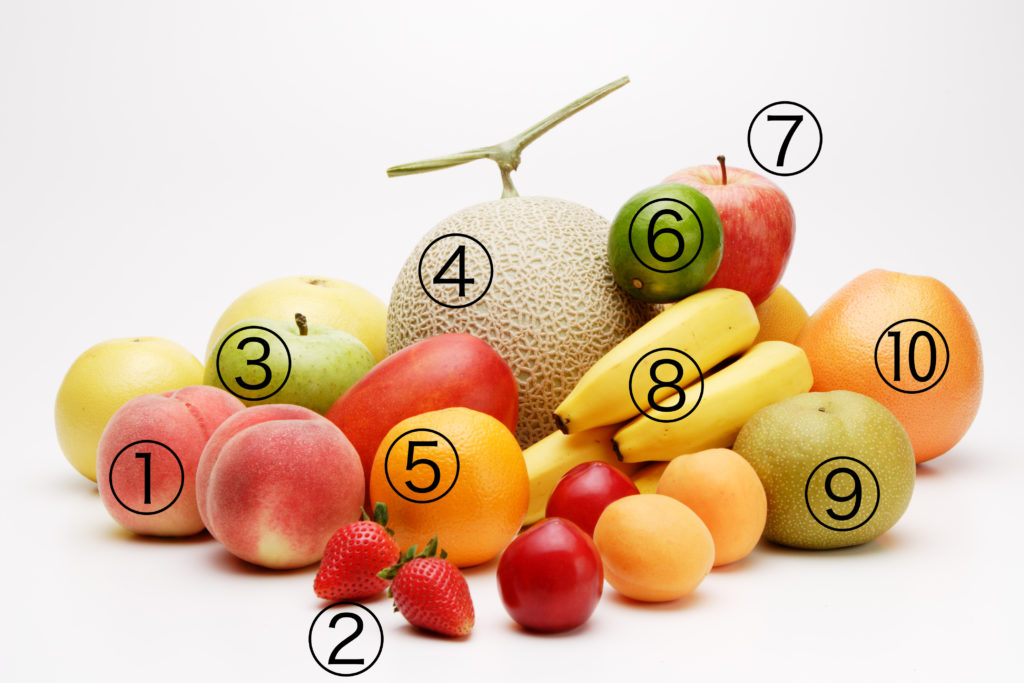 くだもののなまえ 2023 3/28 目次こたえ なし すいか メロン バナナ パイナップル マスカット ぶどう りんご あおりんご さくらんぼ いちご もも キウイ グレープフルーツ ライム レモン オレンジ みかん もんだい F&B_Japanese