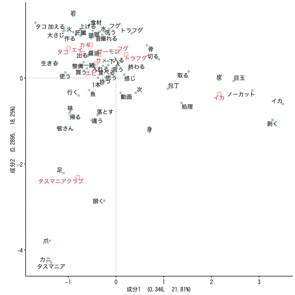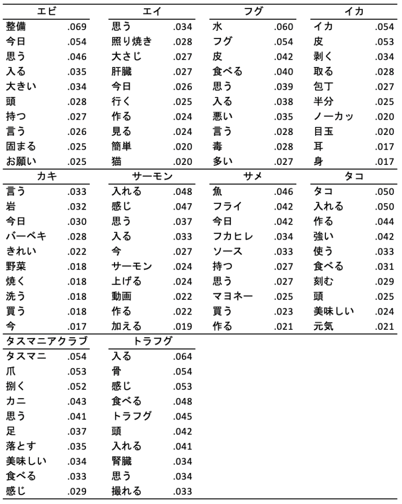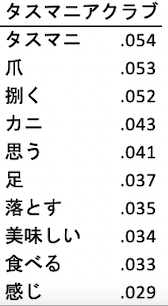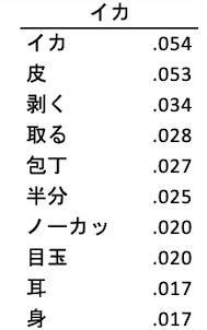 ここでは、タスマニアクラブとイカの動画における特徴語のコロケーションを分析する。