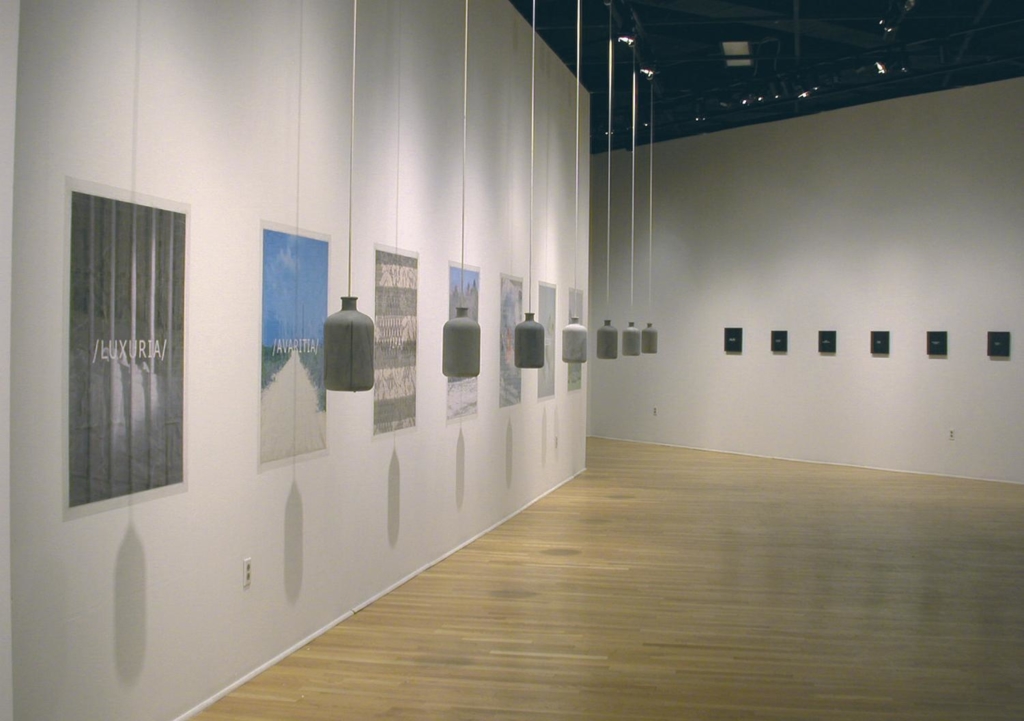 Nobi Shioya’s installation 7S (2003) consisted of seven large ceramic bottles suspended from the ceiling, each containing one of seven scents created by one of seven of the world’s top perfumers. Each perfumer was asked by Shioya to create an olfactory representation of a deadly sin: Pride, Envy, Anger, Sloth, Avarice, Gluttony, and Lust. The scents were accompanied by photos representing each sin hung on the walls of the gallery, with names of the sins in Latin. In addition to creating olfactory portraits of the seven deadly sins, the perfumers were asked by Shioya to create “self‐portraits” composed of scents. Each portrait consisted of a black panel saturated with scent and hung on the wall next to a smaller panel with the list of each perfumer’s most recognized commercial mass‐market scents. The large “self‐portrait” panel was also painted with the perfumer’s initials and a web site address where the visitors could learn more about this particular perfumer’s career.