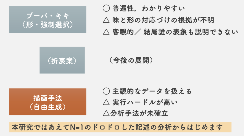 従来,味のイメージを問う心理実験は,強制選択式により行われてきました.