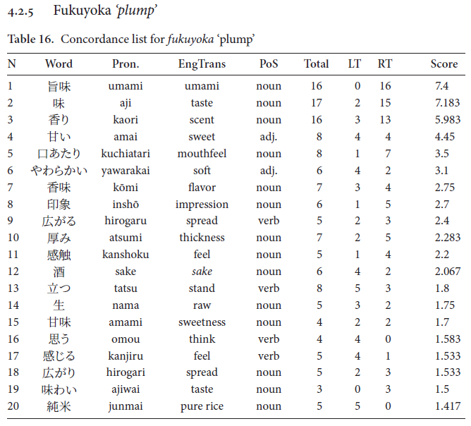 Fxyma, H. (2022). Clear Is Sweet: Defining Aesthetic Sake Taste Terms with a Usage-Based Approach. In The Language of Food in Japanese. Cognitive perspectives and beyond, edited by Kiyoko Toratani, Converging Evidence in Language and Communication Research, 25: 192–230. Amsterdam: John Benjamins Publishing Company.