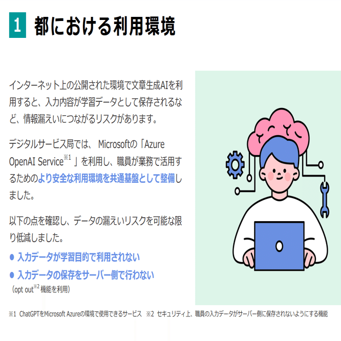 例えば、2023年8月23日に東京都庁が「生成AIを都庁内の全局で導入、業務活用を開始」したと報じられました。